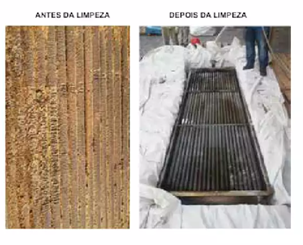 A foto abaixo mostra um segmento de um radiador de secador que ficou 2 anos sem limpeza:
